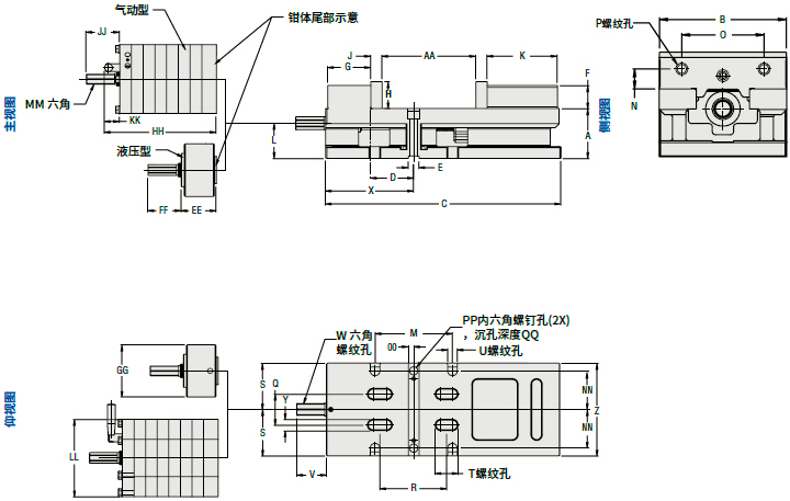 反向型(3610)和反向短體型(3630)標準型、液壓型和氣動型此型鉗除了具有標準多功能平口鉗的特點外,更具獨特 性。Y軸是正向,易于編程。定鉗在手柄一側(cè),操作者在裝卸 工件時更安全、簡捷、迅速。功能和特點: