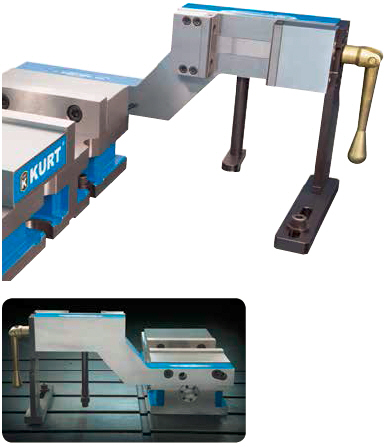 SDW25II型垂直鉗可以安裝在任何KURT的6英寸(150mm)虎鉗上, 用于在垂直方向上對工件進行加工。在垂直鉗的動鉗一側有一個支 撐立腿,并配有一個可調節(jié)工件高度的定位桿。
